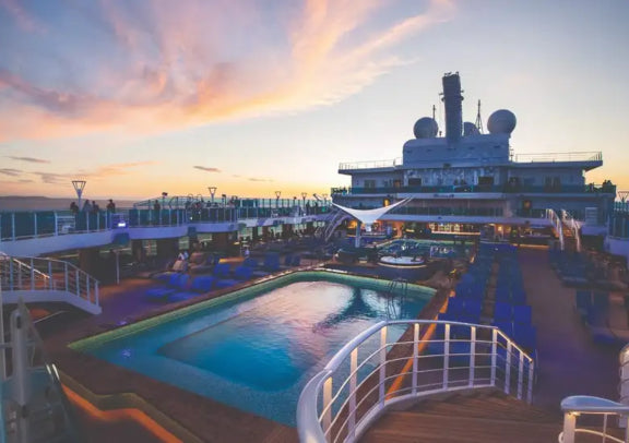 全天海上航行,尽情享用邮轮丰富设施:泳池、水疗、健身房、剧院演出与主题活动等。