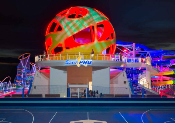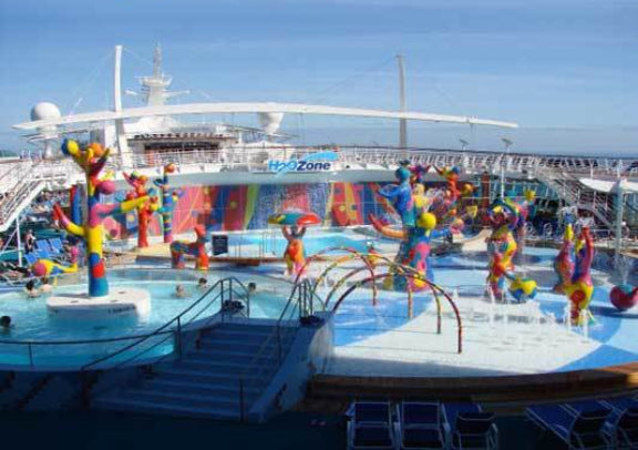 - 15 层甲板遍布各类娱乐与运动设施: · FlowRider 冲浪模拟器、H2O 水上乐园(夜晚化身露天舞池)、冰上溜冰、攀岩墙等超多玩乐