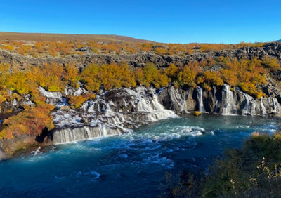又名熔岩瀑布,位于西部冰岛,是由流淌于Hallmundarhraun熔岩原边缘的